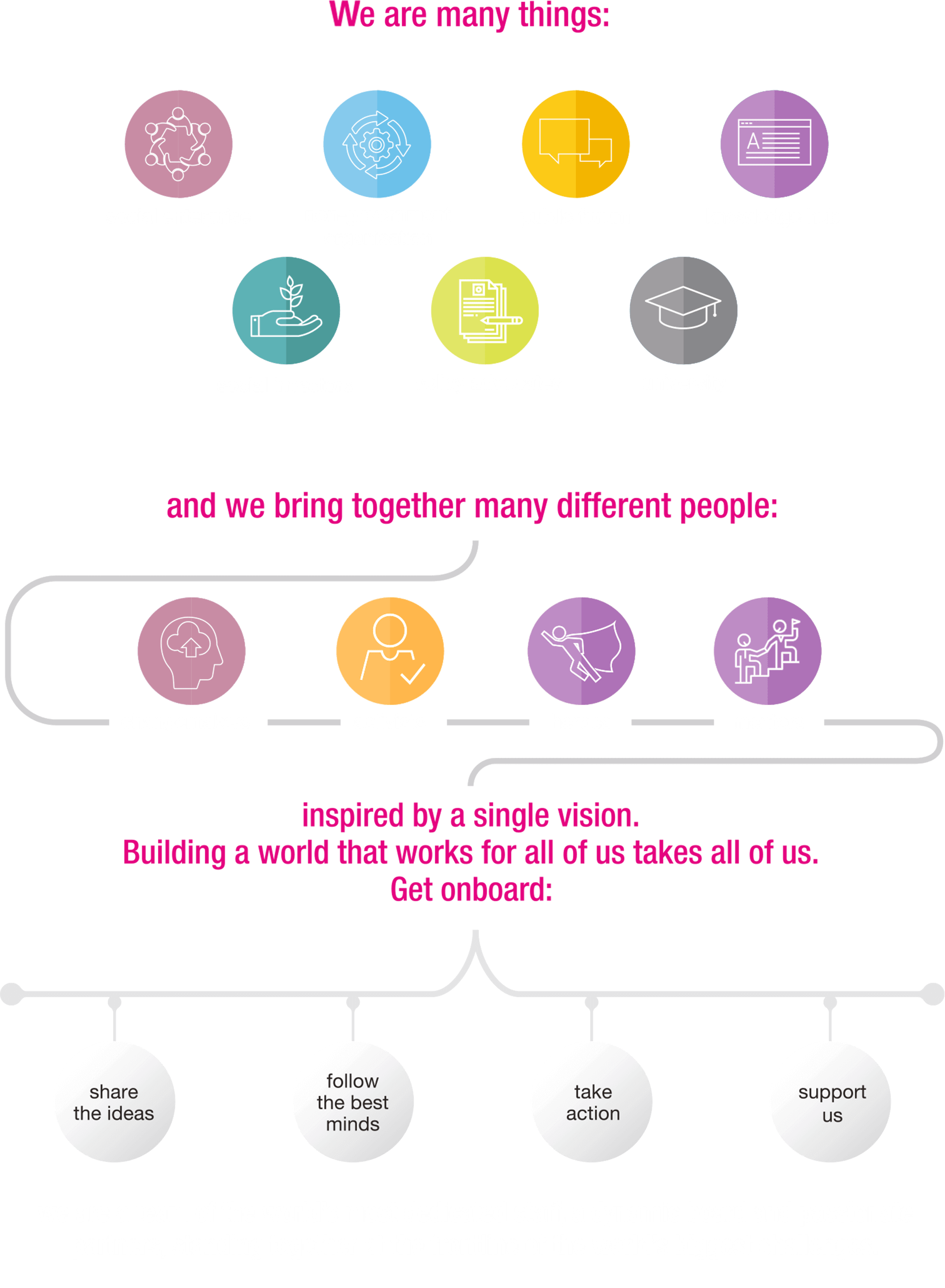 We operate as a solutions ecosystem, including social development programmes, social enterprises, humanitarian response, a bank and a university.